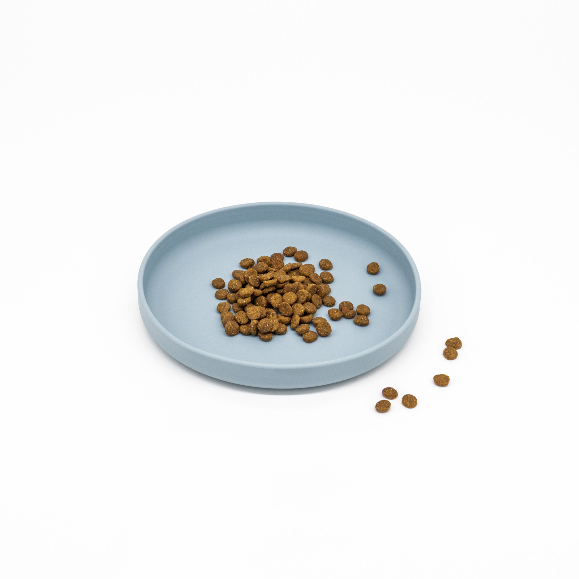 Stilvoller, ovaler Katzennapf aus Silikon – rutschfest, schnurrhaarfreundlich & spülmaschinengeeignet.